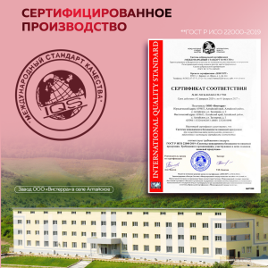 Продукт изготавливается по технологии водной экстракции и выпускается в соответствии с ГОСТ Р ИСО 22000-2019, что гарантирует высокую степень очистки, биодоступность и безопасность при длительном применении.