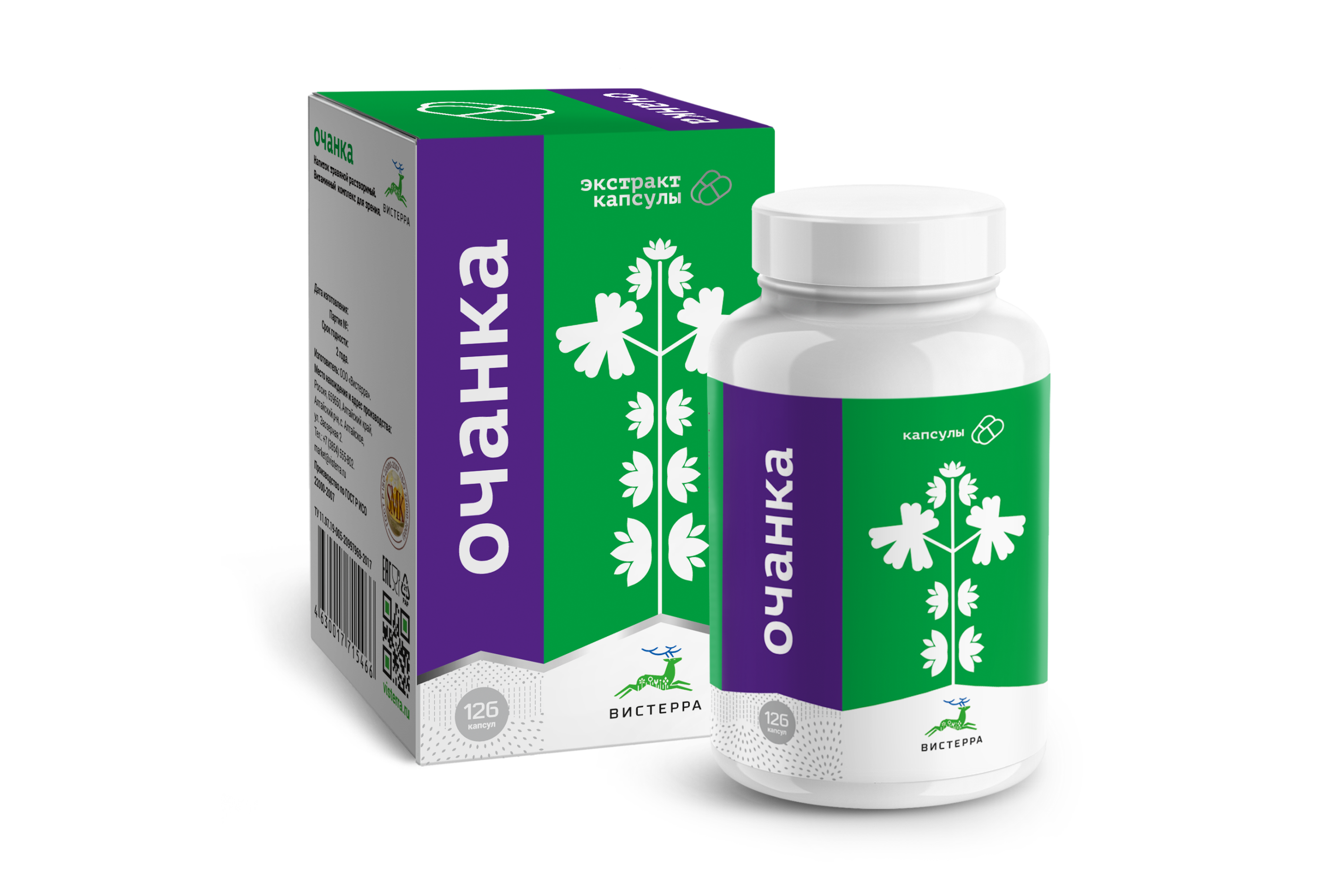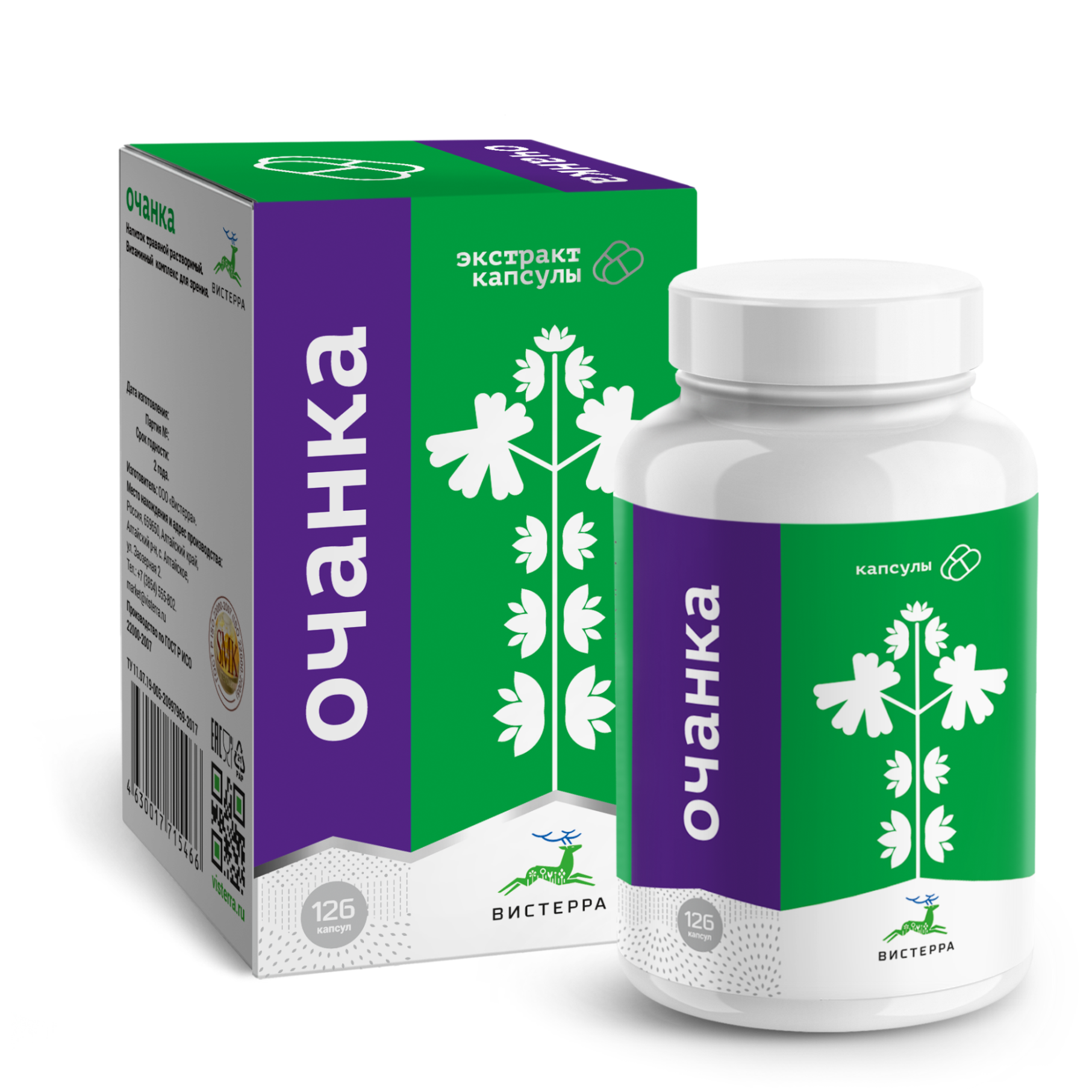 Комплекс на основе экстрактов лекарственных растений разработан для поддержки зрения и профилактики офтальмологических нарушений. Основу формулы составляет экстракт травы очанки — растения, традиционно применяемого при воспалениях глаз. Дополняют состав экстракты черники, шиповника, моркови и облепихи, богатые каротиноидами, антоцианами и витаминами. Компоненты поддерживают сосуды, снижают утомляемость глаз, улучшают остроту зрения при длительной зрительной нагрузке. Подходит взрослым и детям школьного возраста. Производится по стандарту ГОСТ Р ИСО 22000-2019 с контролем на всех этапах — от выращивания сырья до капсулирования экстракта.