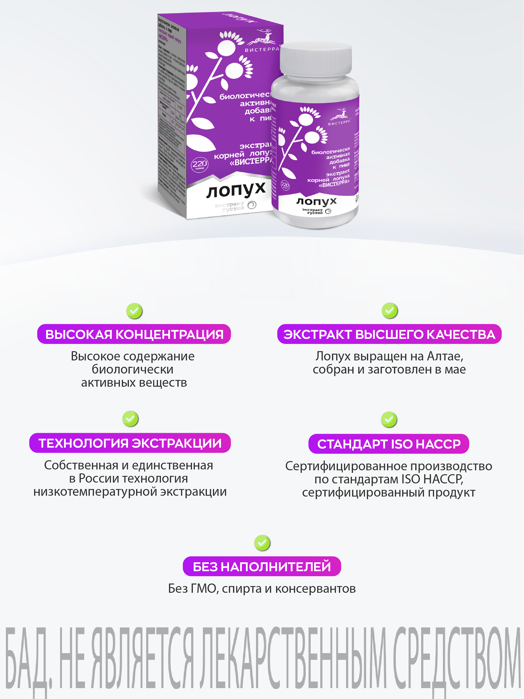 Экстракт от ООО «Вистерра» изготавливается из свежих майских корней, без сушки и хранения. Производство расположено рядом с местом сбора. Стандарт ГОСТ Р ИСО 22000-2019 гарантирует качество, безопасность и сохранение природной активности.