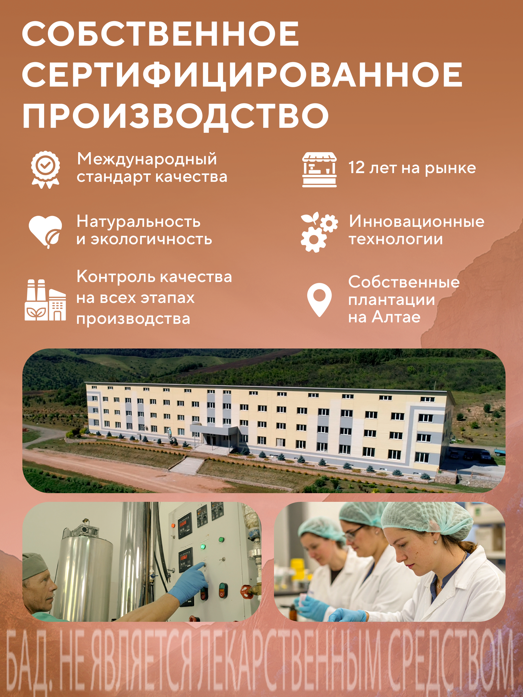 Продукт изготавливается по современной технологии очистки с сохранением природной активности компонентов. Выпускается в соответствии с ГОСТ Р ИСО 22000-2019, что подтверждает стабильное качество и безопасность.