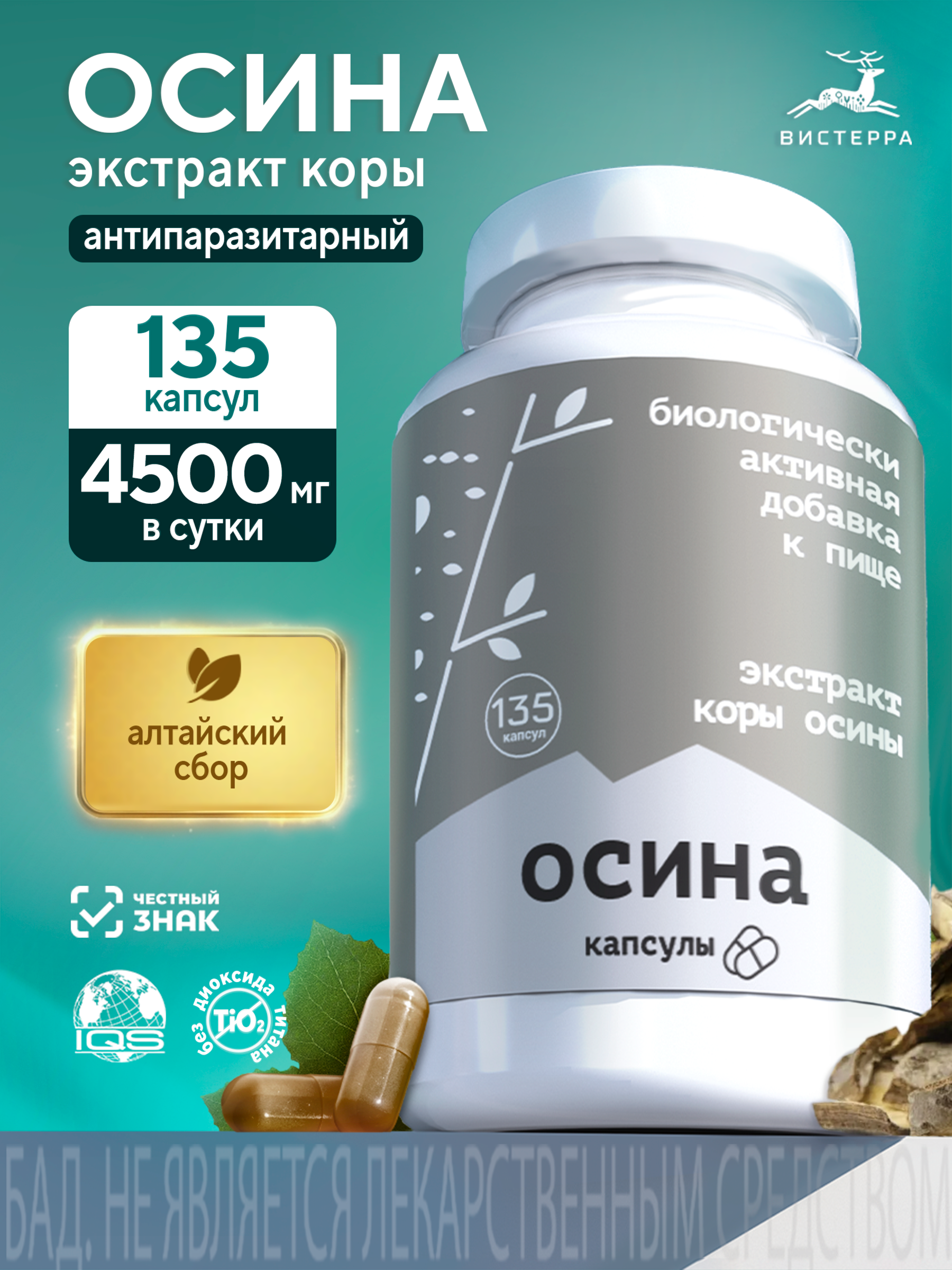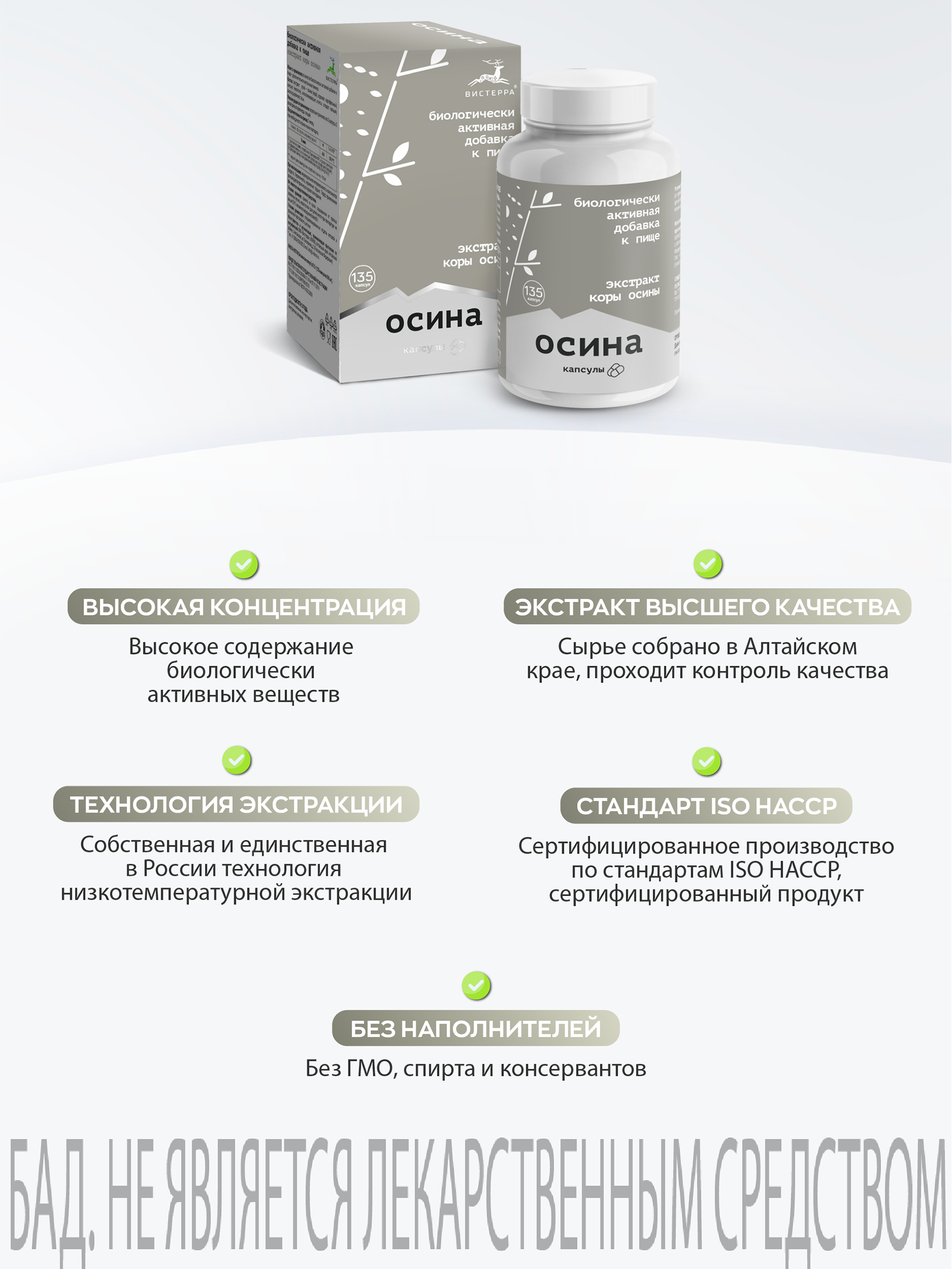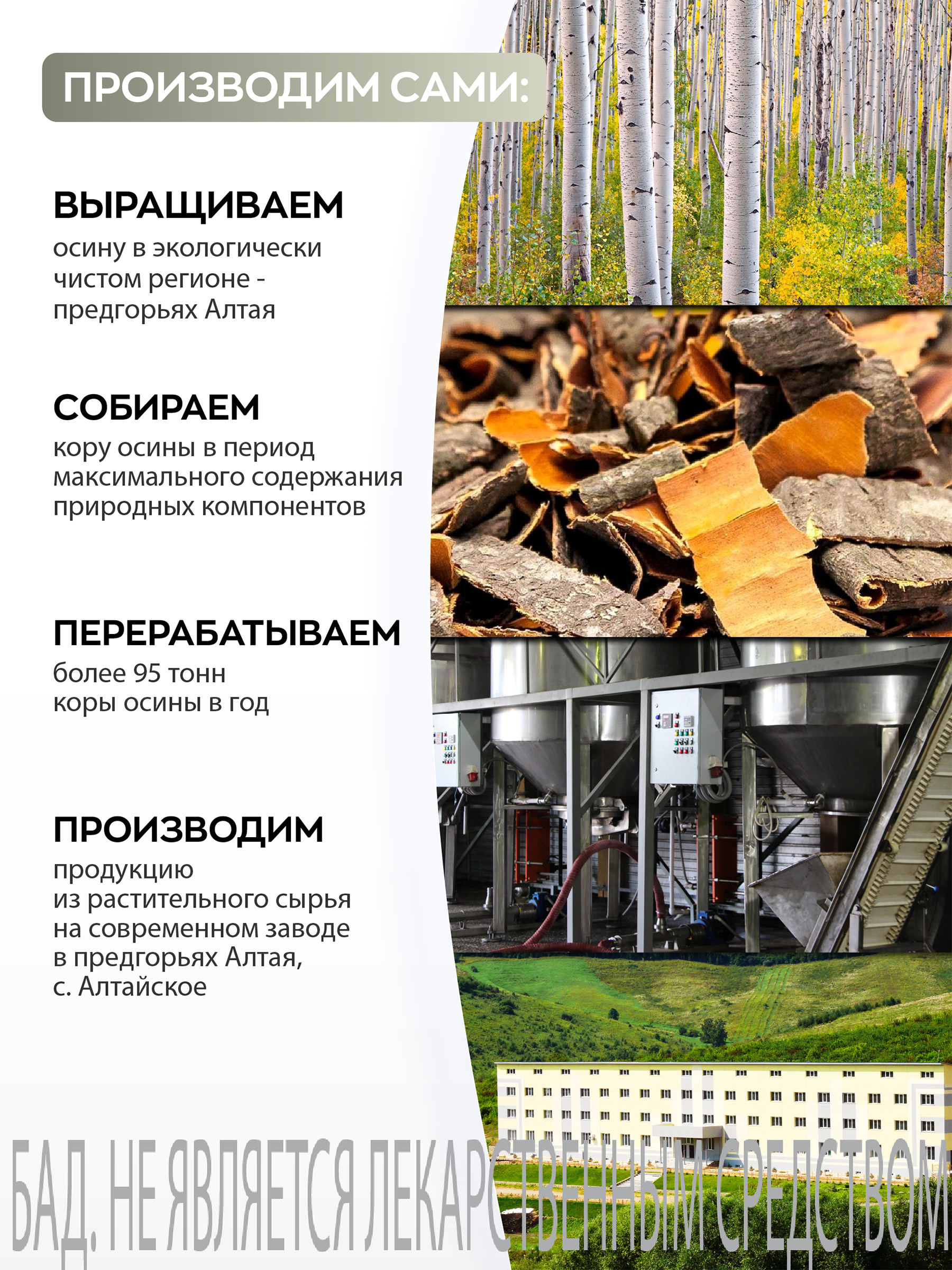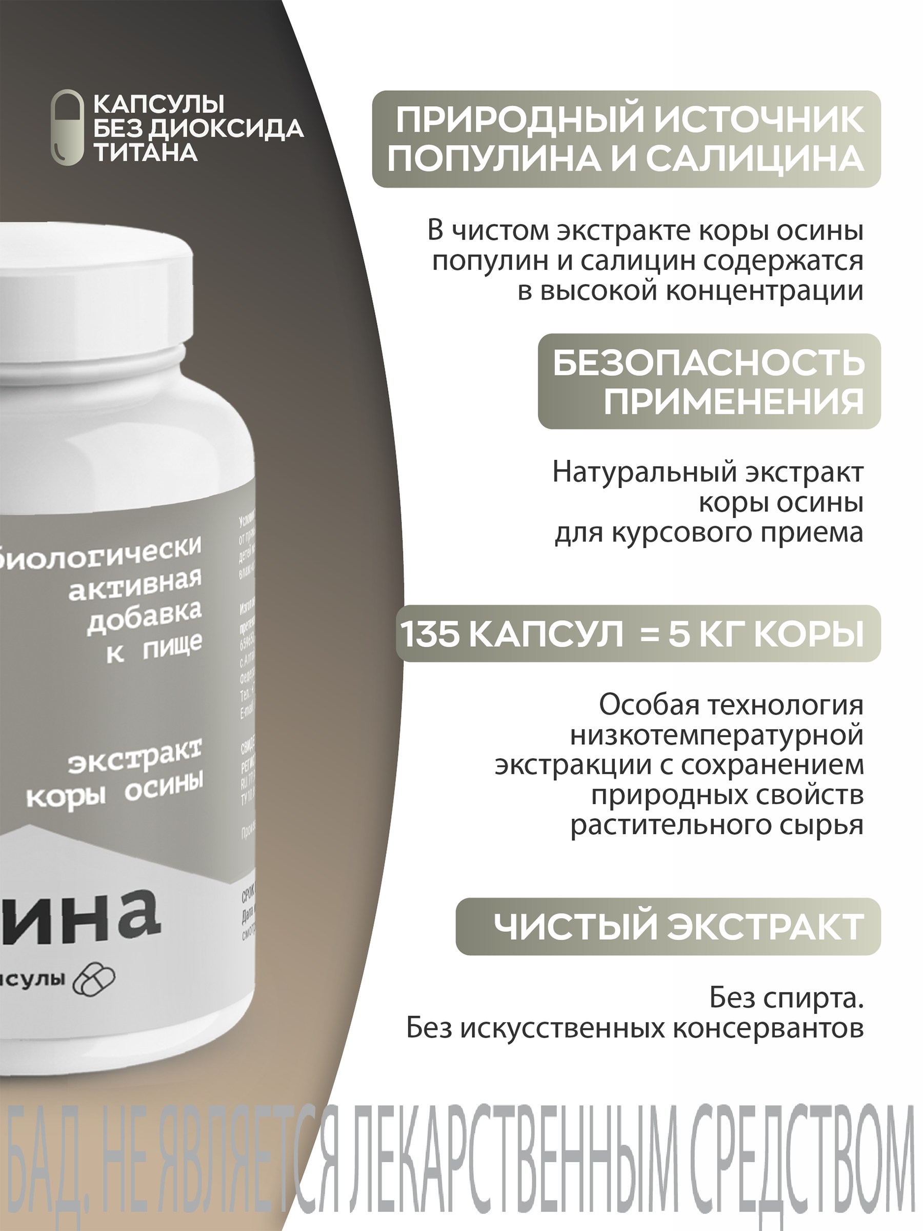 Концентрированный экстракт коры осины в желатиновой капсуле (100 % фармацевтический желатин).